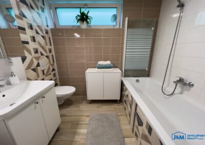 … zatepleného 6-ti patrového panelového domu s výtahem. V bytě je větraná komora (vhodná na skladování potravin). Koupelna je samostatná. Byt má nové štuky na zdech, plovoucí podlahy, zděné jádro, plastová okna s protihlukovým trojsklem (vyplněné plynem), předokenní hliníkové žaluzie. Vstupní dveře jsou bezpečnostní s rozvodovým systémem a trezorovým zámkem. Domovní telefon se zvonkem je vybaven dálkovým otevíráním dveří. Byt je vytápěn ústředním topením. Radiátory mají termostatické hlavice.